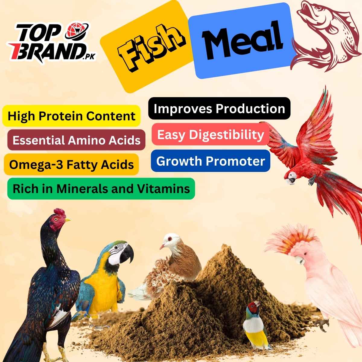 Upgrade your bird, poultry, and livestock feed with Premium Fish Meal, a nutrient-rich supplement designed to enhance growth, health, and production.